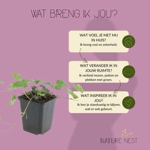 De Klimop 'Glacier' – Ik ben een winterharde klimplant met een frisse uitstraling dankzij mijn unieke bladkleur. Ik groei stevig en robuust, en ben dol op schaduwrijke plekjes waar ik mijn groene magie kan verspreiden. Met mijn dichte tapijt help ik erosie voorkomen en houd ik de bodem lekker koel. Samen met mijn 11 vrienden in deze set zorgen we voor een prachtig, natuurlijk geheel dat jouw tuin karakter geeft.