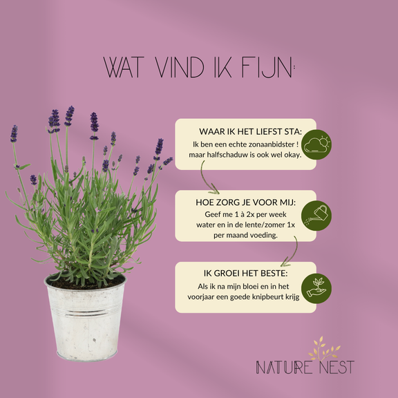 Ik kom niet alleen, ik kom in een gezellig trio! Elk van mijn drie lavendelvrienden zit in een elegante ‘Deluxe’ sierpot van 12 cm diameter. Samen vormen wij een perfect team dat jouw plek vult met geur en sfeer. We zijn allemaal ongeveer 25 cm hoog bij levering, maar met een beetje liefde en zon groeien we uit tot een volwassen hoogte van 30 tot 50 cm – een prachtig, natuurlijk statement vol leven en kleur.