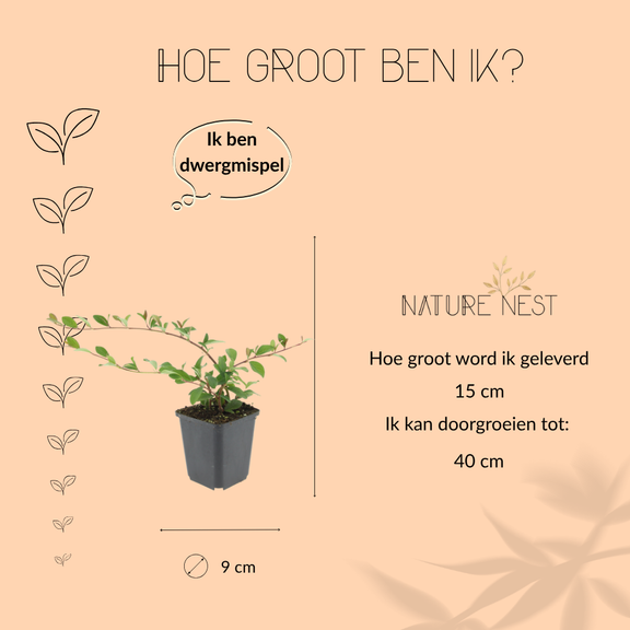 De 12 Dwergmispel Planten – een vrolijk gezelschap van winterharde tuinhelden, elk met een potmaat van 9 cm en een hoogte van ongeveer 15 cm. Samen vormen wij een dichte, groene bodembedekker die onkruid geen kans geeft en jouw tuin een natuurlijke, authentieke uitstraling geeft. Ik ben veelzijdig: perfect voor bloembedden, rotstuinen of als charmante groene deken over jouw grond.