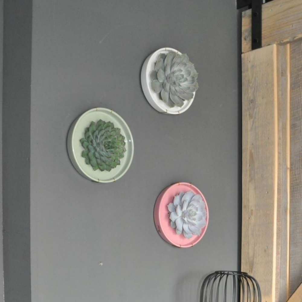 Echte Succulent Lila in groene keramiek schaal - Ø12-14 cm ↕5 cm - 1x Echeveria Lilacina - vetplant