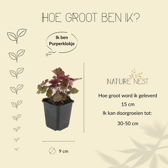 Ik kom in een set van 6, zodat je meteen een prachtig paars tapijt kunt creëren. Elk van mijn vriendinnen is ongeveer 15 cm hoog in de pot, maar geef ons wat liefde en ruimte, en we groeien uit tot een volle 30 tot 50 cm vol karakter. Mijn bladeren zijn niet alleen prachtig, ze zijn ook robuust en winterhard – een echte doorzetter dus! Samen vormen wij een perfecte mix van stijl en duurzaamheid.