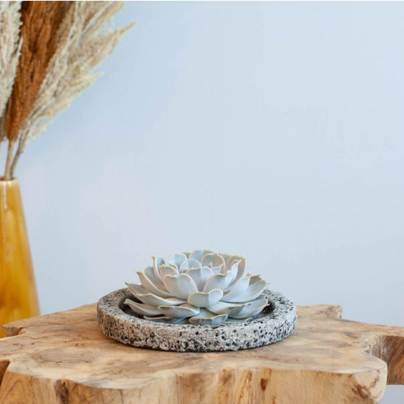 Echte Succulent Lila in Concrete keramiek schaal - Ø12-14 cm ↕5 cm - 1x Echeveria Lilacina| vetplant