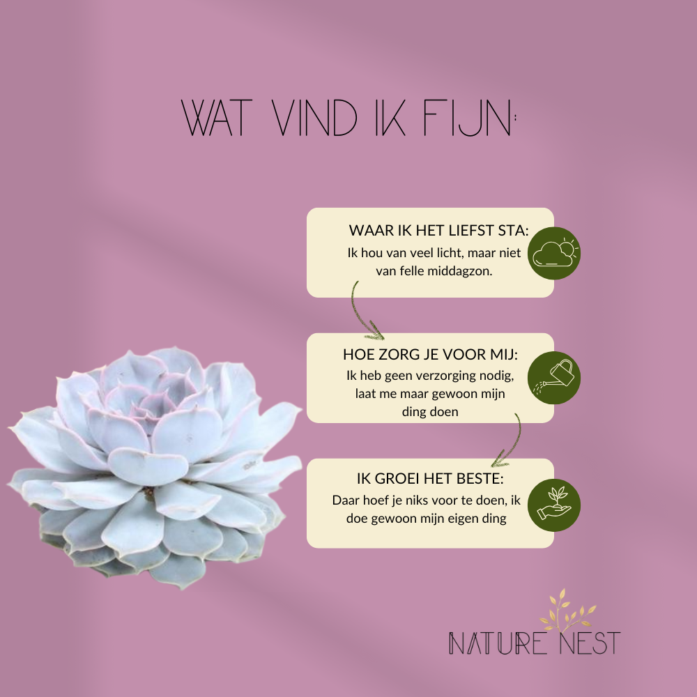 - Soort: Echeveria Lilacina (ROOTLESS succulent)