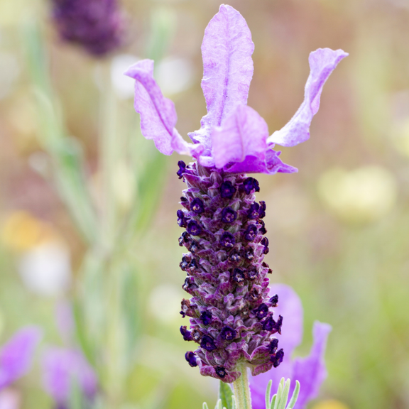 Lavandula stoechas – oftewel: ik, de Franse lavendel. Mijn paarse bloemen zijn niet alleen prachtig om te zien, maar ook onweerstaanbaar voor bijen en vlinders. Samen met mijn aromatisch grijsgroene blad zorg ik voor een levendige, natuurlijke harmonie. En mijn sierpot ‘Deluxe’? Die geeft mij die luxe uitstraling waardoor ik meteen een eyecatcher ben, waar ik ook sta.