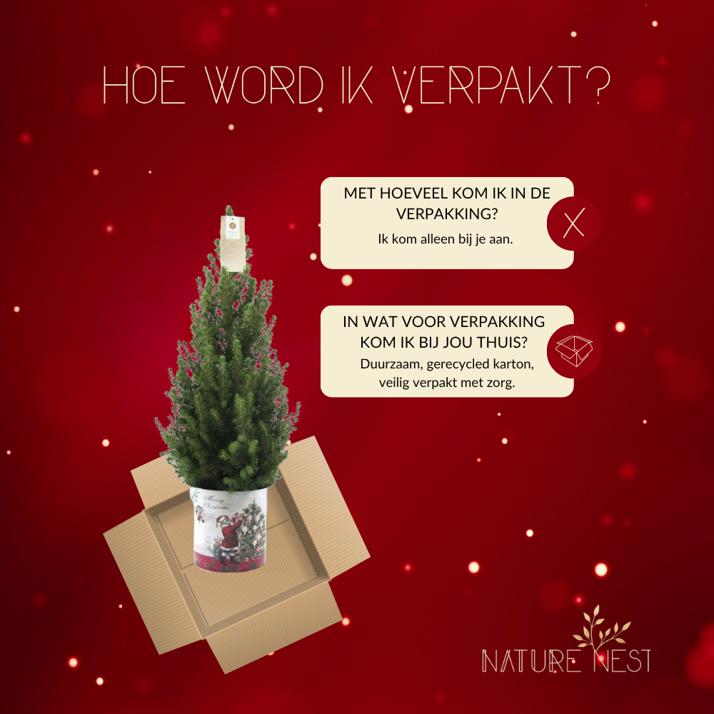 Ik ben jouw knusse wintervriend, de Picea Conica 'December', maar noem me gerust gewoon December. Met mijn frisse groene naalden en dat charmante kerstmanpotje ben ik de perfecte dosis gezelligheid die jouw huis deze winter nodig heeft. Ik ben niet zomaar een kerstboom, ik ben een beetje wild, vol karakter en met een tikje attitude – precies wat jouw interieur dat warme, authentieke gevoel geeft. En weet je wat? Ik ben ook nog eens super makkelijk in de omgang, dus je hoeft geen groene vingers te hebben om van mij te genieten!
